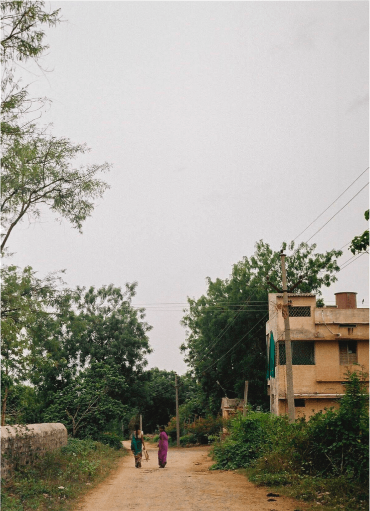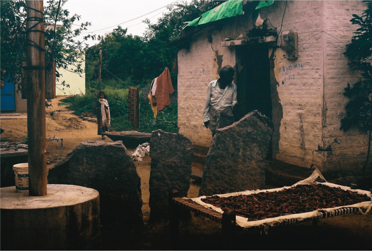 It’s a cloudy and humid afternoon in Telangana, you can feel, in the air, that the monsoon season is behind the corner. I’m sitting in the back seat, my friend Rajesh is driving in the hectic traffic while my eyes get entertained by what’s passing by. It’s an explosion of senses: smells, noises, colors. Everywhere. Suddenly, without even noticing it, the streets become narrower and the loud noises start to fade. We are in the village of Seethampet, and, at one point, I see a woman in a beautiful orange and flowery sari. It’s Uma, waving at us from the street.