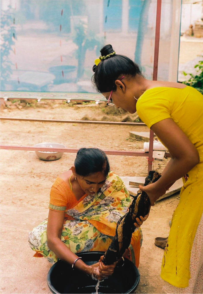 For example, the Saree Rolling Project designed by SFC helps widows start a microbusiness within the community through the use of a machine designed for washing, drying and ironing the saree.