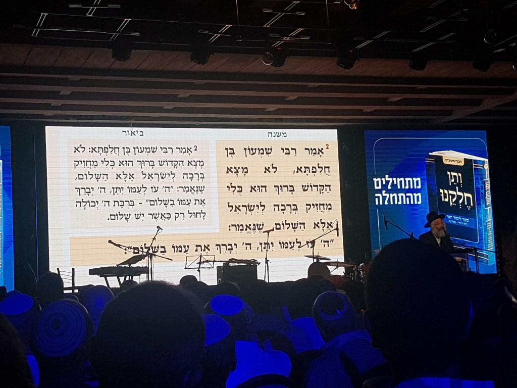 The digital format of Jewish prayer books usually come as applications that spread out the entire Jewish prayer cycle according to daily blessings, shabbat prayers, and holidays. It allows anyone with a mobile phone to access all prayers wherever they are. However, as so many prayers require the presence of 10 worshipers this technology does not focus on virtual encounter or geographical distance. Instead, it aims to facilitate, mediate, and conduct co-presence. In that sense, the community of Veten Helkeno was able to overcome their shift from a virtual, non-proximate, scholarly community with profound shared time cycles and spiritual diets into a physically proximate, co-present, community. This transition was completed after the prayer, when everyone gathered in the hall and studied the last mishna together from the booklet. What they studied alone-together for seven and a half years was now materialised in one physical space, with the aid of a large screen (another important technology of co-presence).